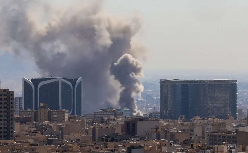 Plumes of smoke rise following reported explosions in Tehran on 1 March. Photo credit: AFP.