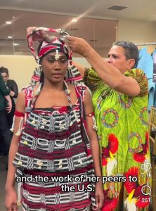 The journey back to New York for Florence started 10 years ago when her bilum weaving-style dress was shown on the runway at the LDNY Festival in New York’s UN building – refer 1st photo captured by Spencer Kohn/LDNY. 💥 Florence became known as the bilum meri, the bilum woman, she wanted to take bilum fashion to the world. 🌐