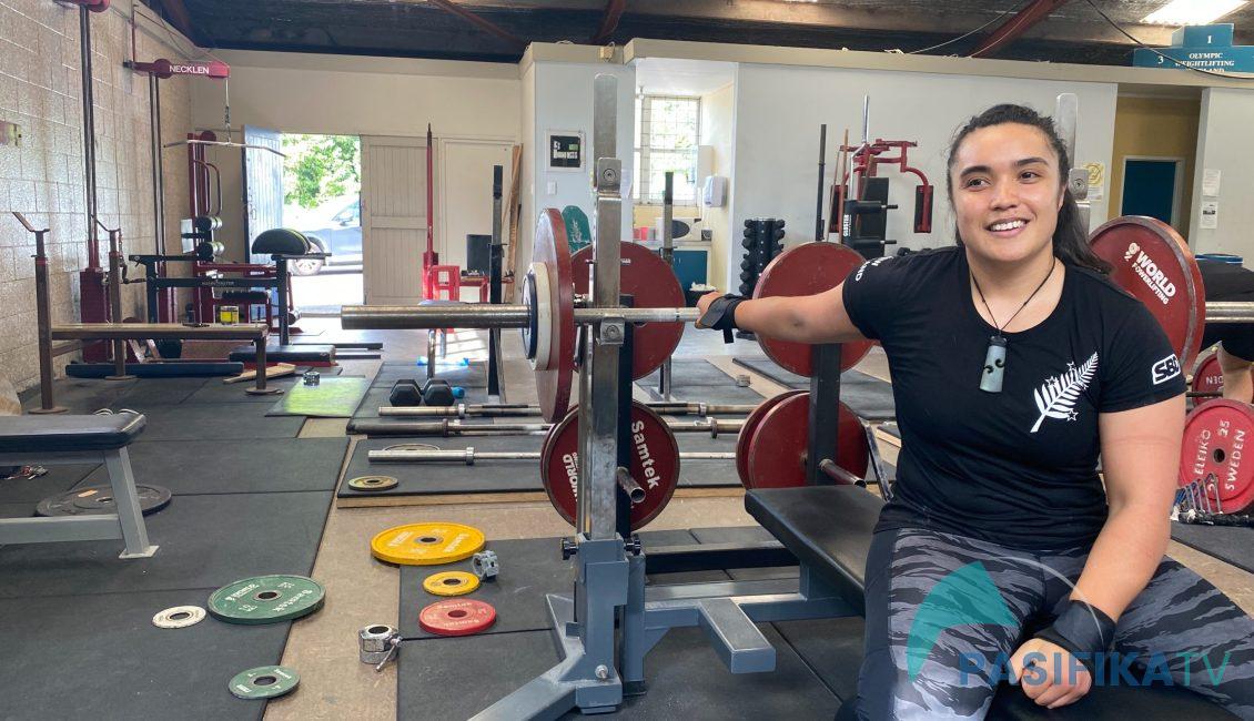 Karlina Tongotea mid-workout at the Olympic Weightlifting Association gym in Newmarket