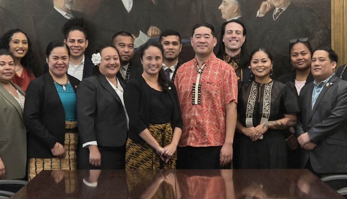 Laufou Jake Fitisemanu Junior with the Young Pacific Leaders Alumni at the Utah State Capitol, Salt Lake City.
