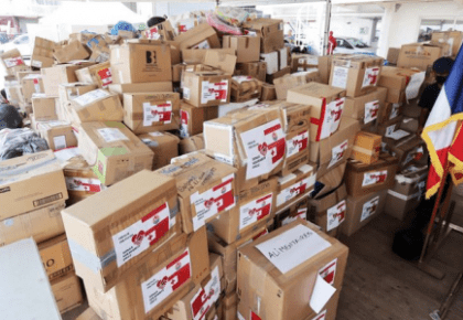 Almost six shipping containers were filled yesterday and organisers say at one point queues of more than 400 hundred cars stretched three kilometres.